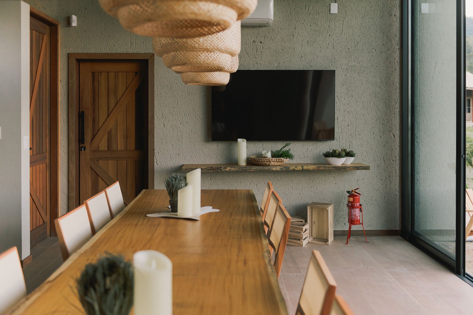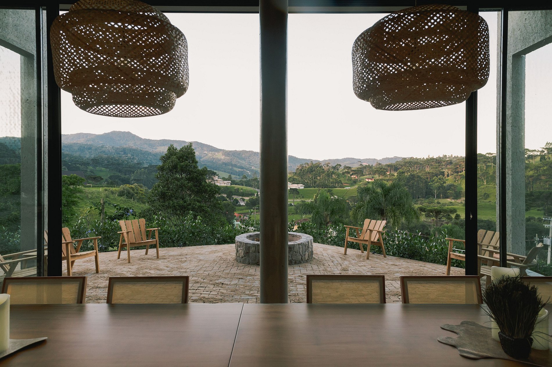 Além disso, a propriedade conta com um salão de festas (alugado a parte da estadia) para você que está hospedado com seus amigos e família poderem se reunir em um ambiente agradável com toda estrutura necessária (cozinha equipada com churrasqueira, mesa ampla para 16 lugares, lareira, TV e lavabo com acessibilidade). O espaço é rústico com paredes de pedra corten e janelas de vidro permitindo que a luz natural adentre ao ambiente e conecte os convidados à beleza do cenário externo. Na varanda, um fire pit - lareira ao ar livre - completa a experiência. Ao redor do fire pit, cadeiras confortáveis são dispostas para que os convidados possam se reunir e criar memórias inesquecíveis em um ambiente único e com uma atmosfera acolhedora (consultar valores)