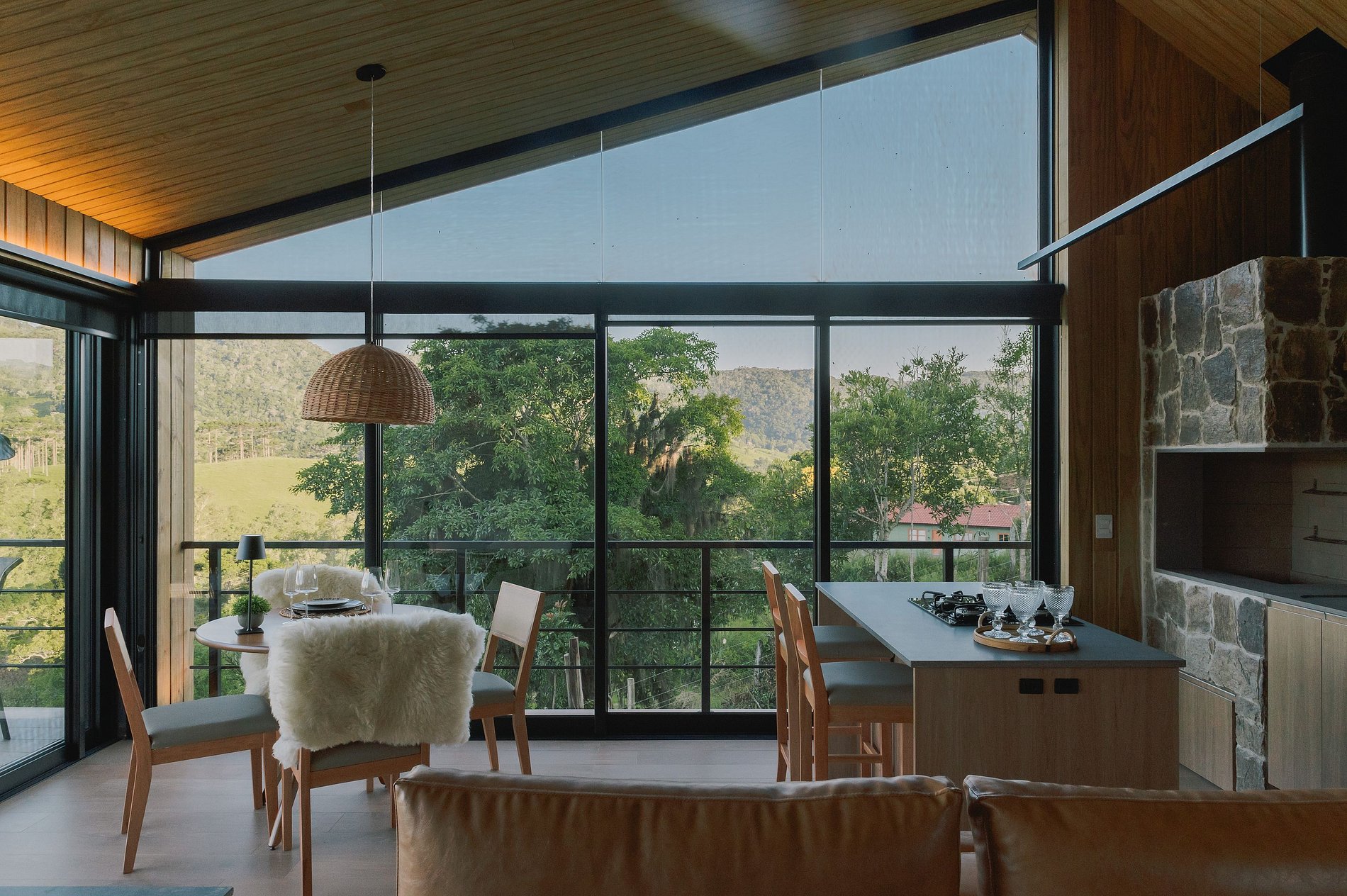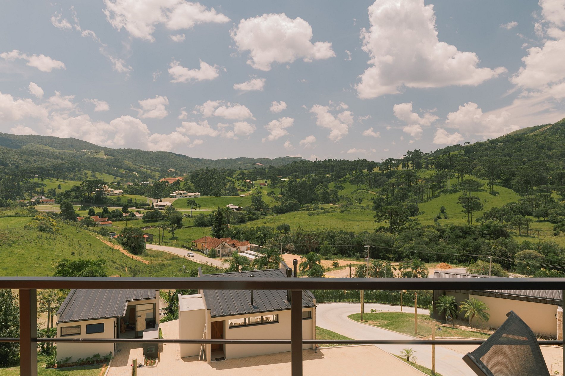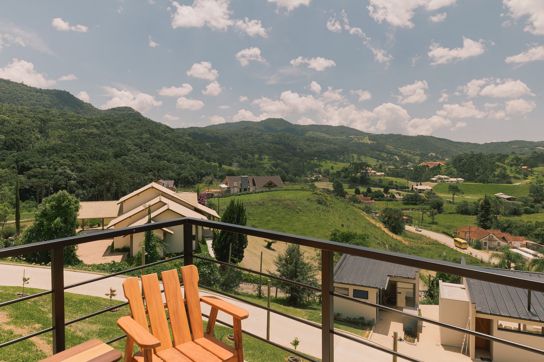 Bangalô com independência de área privativa e área de convivência. Excepcional vista para montanha de floresta natural e um vale de ocupação típico de um distrito rural.